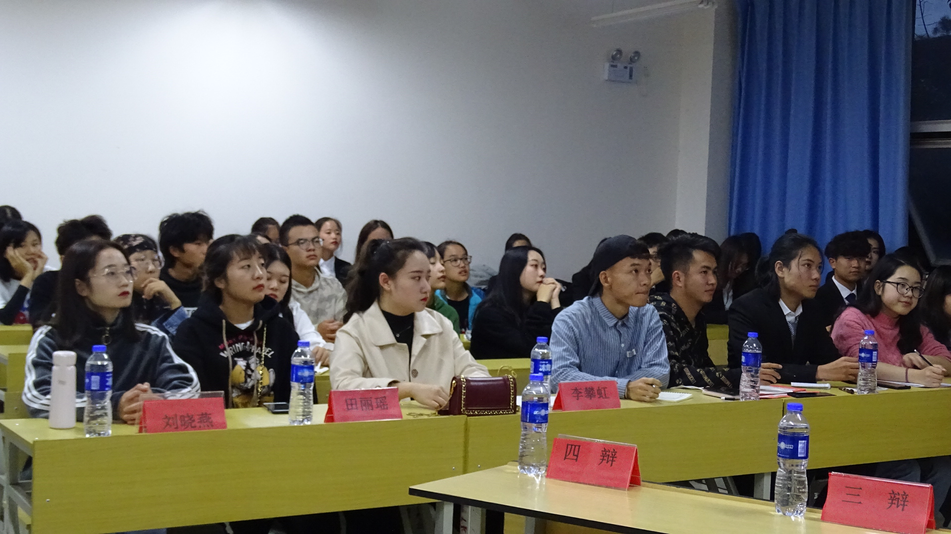 云南师范大学文理外国语学院为丰富同学们的课外活动,培养大家的语言表达、逻辑推断以及辩驳能力和临场发挥反应,并增强大家的团队意识。外国语学院于2019年10月16日下午6点40分在D107教室举办了以关注热点,追求真理,强化辩才,展现自我为主题的成才杯辩论赛的半决赛暨决赛。在经过前期激烈的初赛面试和复赛面试后剩下四支队伍进入此次决赛。