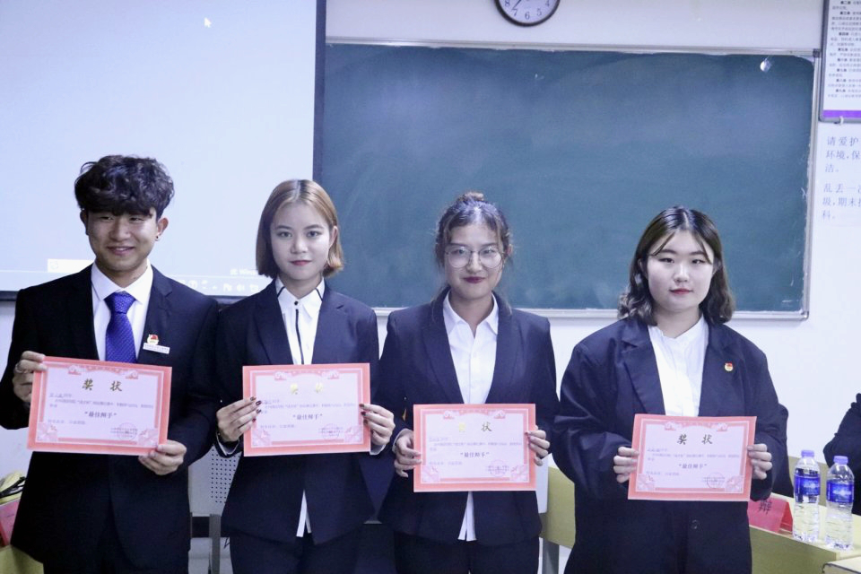 辩论赛结尾,主持人宣布比赛获奖辩手,由外国语学院团委学生会主席李攀虹为获奖辩手颁发奖状。紧接着,由外国语学院团委学生会主席李攀虹发言:对团委学生会办公室部门对此次辩论赛的辛苦筹办表示感谢,对辩手导师和辩手们的充分准备与优秀表现进行表扬。辩论辩手导师做出以下两点点评:一、辩手们短短几天时间内的充分准备以及出乎意料的优异表现值得表扬;二、辩手们对比赛过程中辩论规则不熟悉,望完善。本次成才杯辩论赛圆满结束。