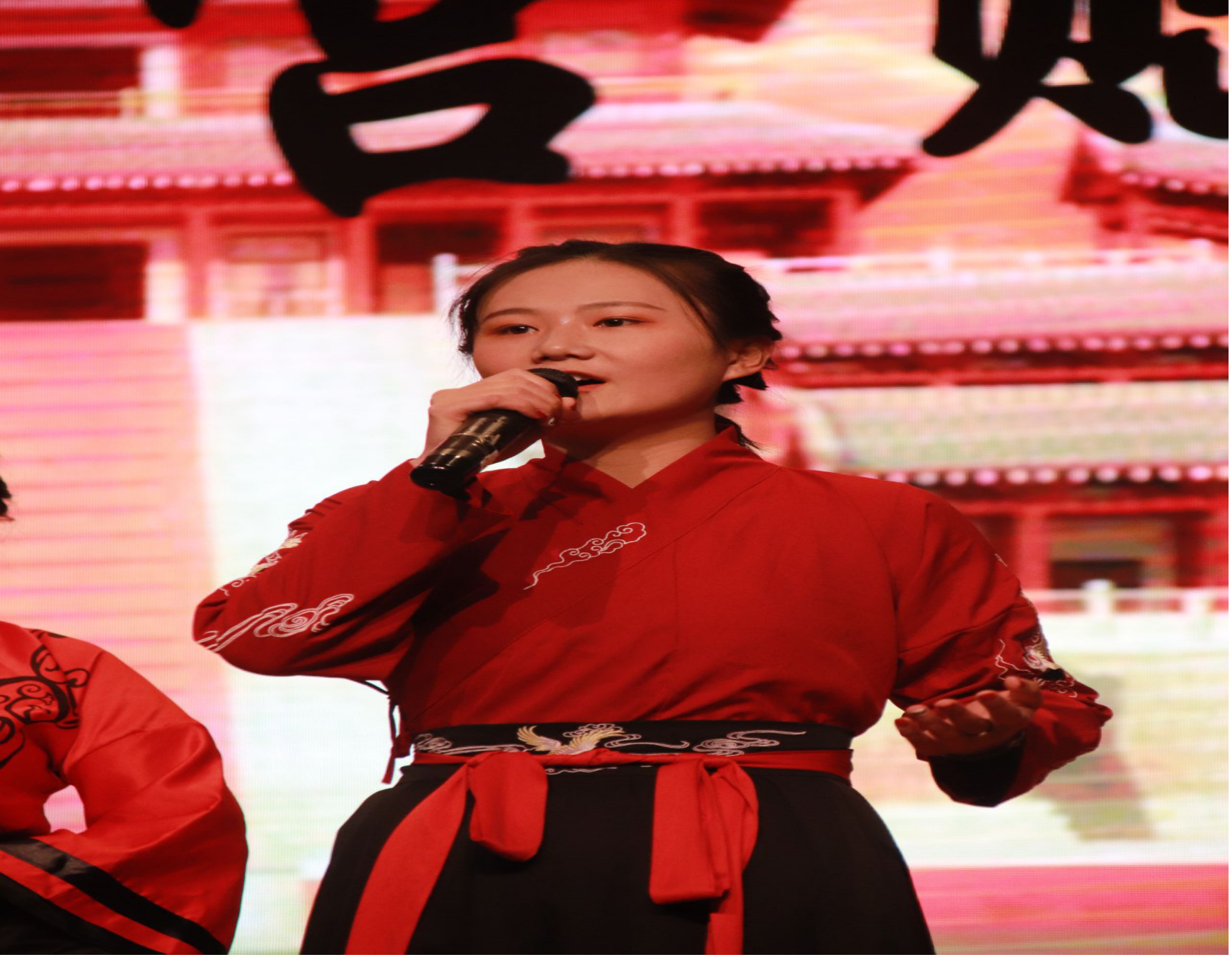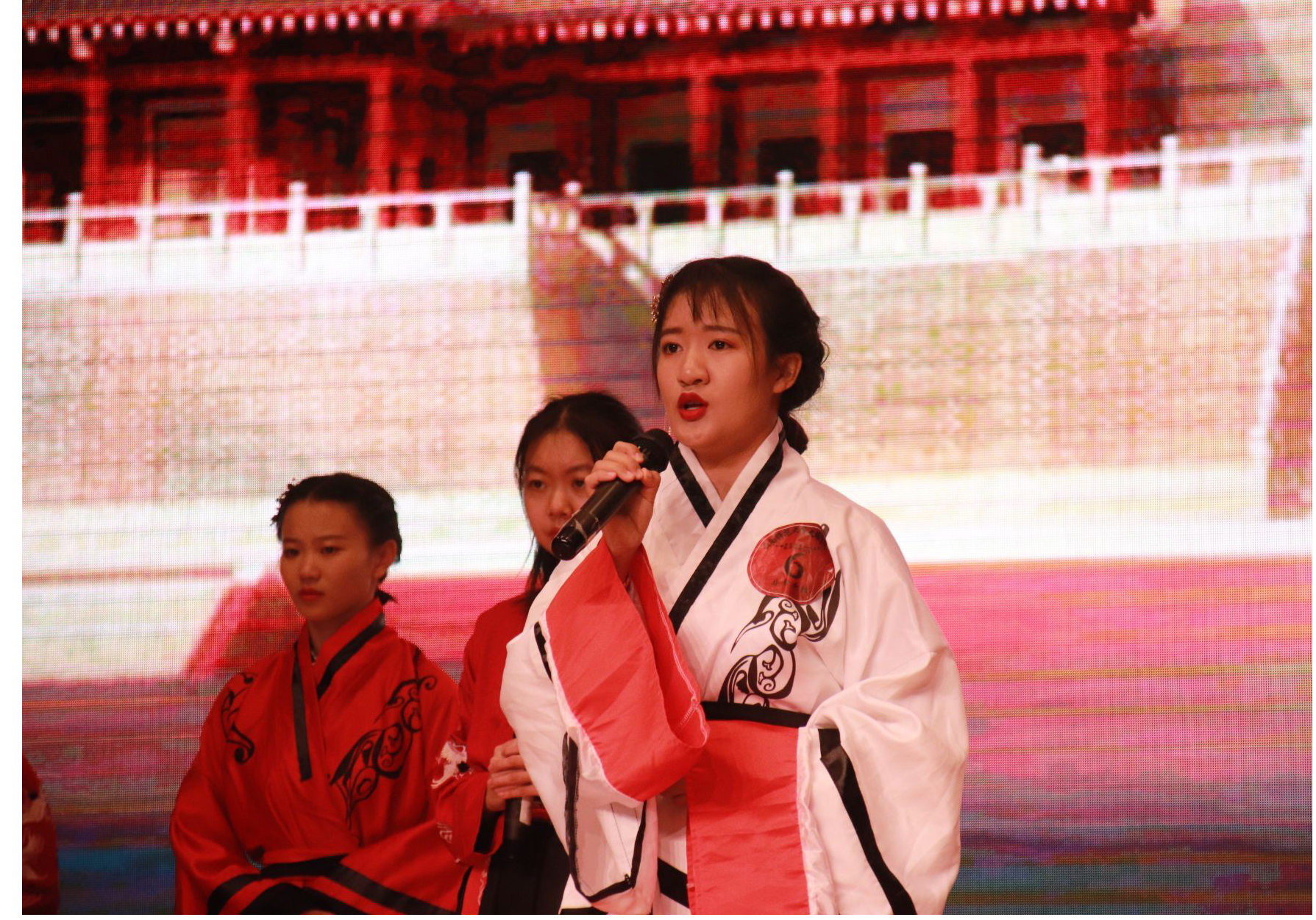 比赛正式开始。一曲《琵琶行》可谓经典吟唱,选手们身着汉服,扮相美丽端庄,两名女子轻拢慢捻地弹起琵琶。铮铮琵琶语,像一颗颗水珠,滑入人心的深处。轻启唇齿,那一句句耳熟能详的诗句缓缓地吐出,全场都被她们吸引住了。