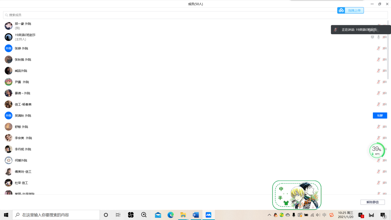 马列部杨雄英老师线上授课(图注)