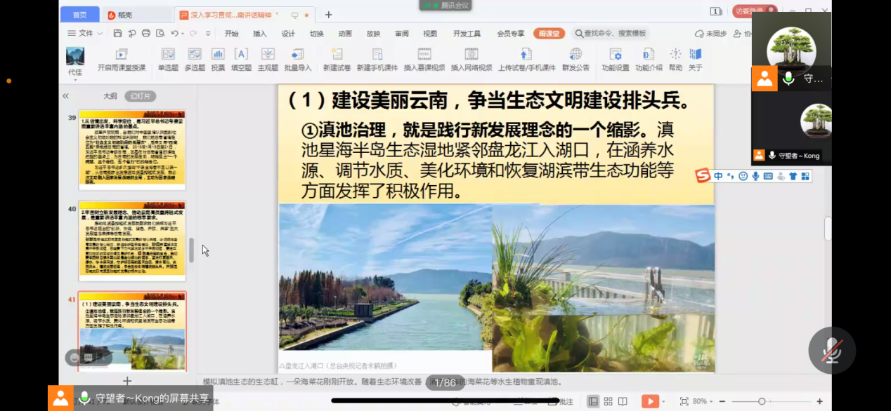 270余位志愿者通过线上会议学习了习近平新时代中国特色社会主义思想党的十九大精神&习近平生态文明思想习近平总书记考察云南重要讲话精神等内容。