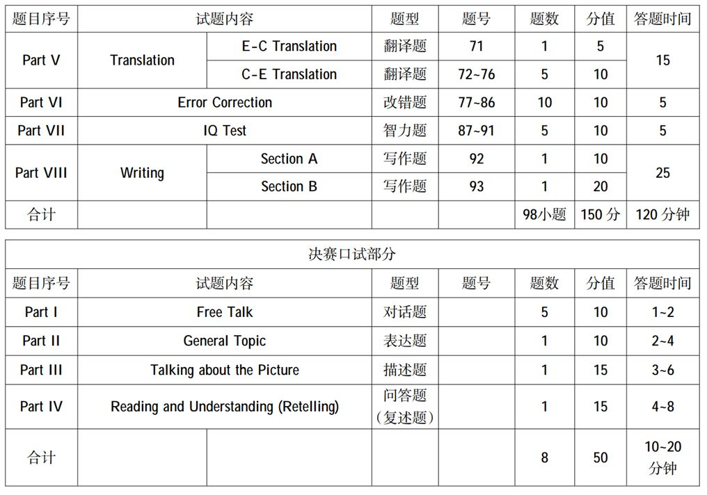 共有两种题型为大作文和小作文,大作文是议论文,小作文以应用文和描述性作文为主。