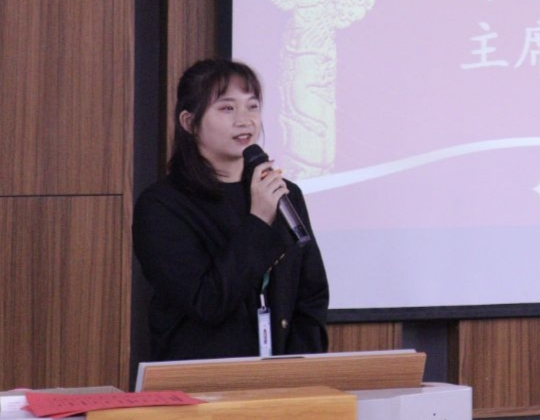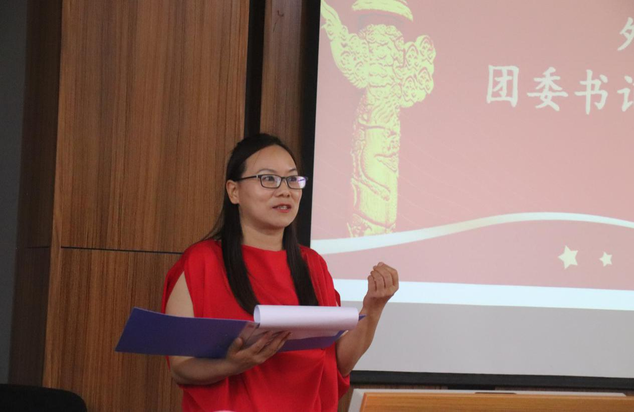 在全体参会人员奏唱团歌后,本次换届大会在纪检部副部长张富梅的主持下拉开帷幕。首先是外国语学院团委书记沈老师对上一届团委学生会工作作总结,对新一届团委学生会工作提出要求并表达了愿景。沈老师在发言中指出:外院团委学生会成员应以学生权益为根本,求真务实,锐意进取;秉承脚踏实地,自强不息的精神,希望新一届团委学生会能够积极探索创新,兢兢业业,在各方面都严格要求,不断取得进步。