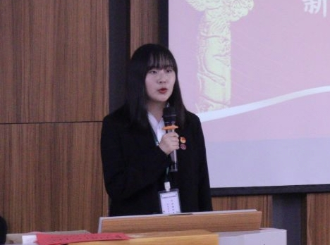 (图为2021届团委学生会团委副书记李颖做就职发言)