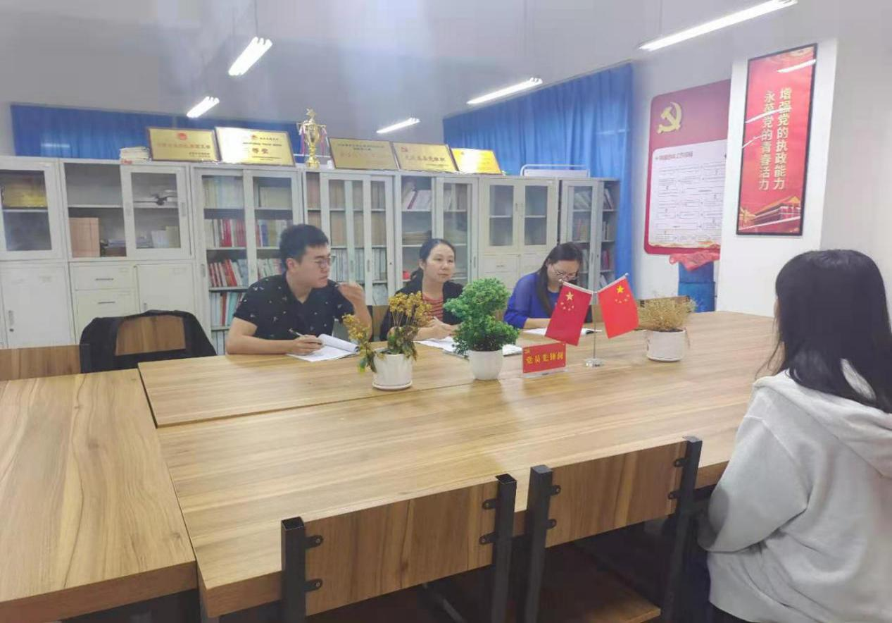 (图为外国语学院党总支书记王娟老师(中)、团委书记沈顺珍老师(右)、专职辅导员刘江老师(左)对团委学生会主席团候选人进行面试)