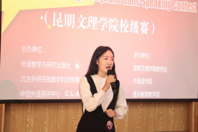 为启发学生对英语学习的兴趣,营造良好的学习氛围,检验我院英语教学质量,展示教学改革的成果,我校组织了2021年外研社国才杯全国英语演讲大赛校级赛。通过初赛的角逐,15位选手成功晋级校级决赛。本次决赛由外国语学院英语系承办,并于2021年10月20日在杨林校区C113室举行,由英语系武江 花老师和杨抒怀老师主持,出席本次比赛评委的教师有:外国语学院副院长邓国栋老师,英语系副系主任王莉老师,外教Joe, 英语教研室主任李卓玥老师以及英语系王小荷老师。
