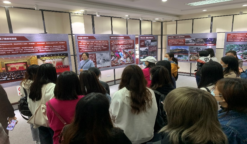 (讲解员为我们介绍云南脱贫攻坚的进程)