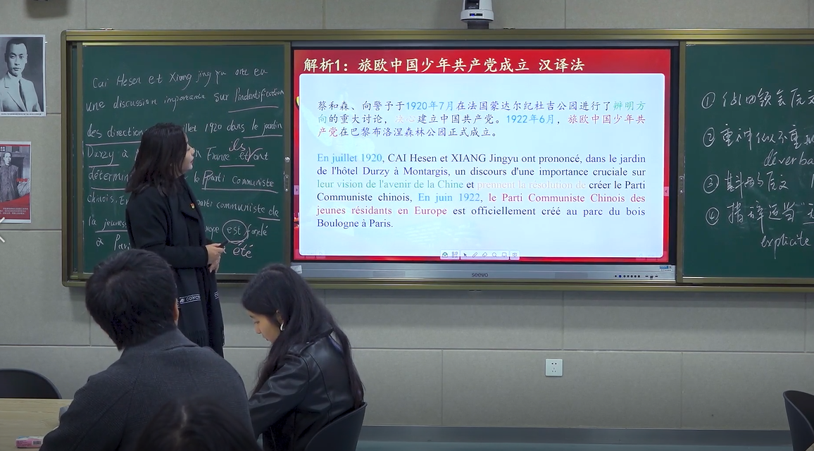 方敏老师连续五年负责《法语笔译2》课程教学,该课程是法语专业本科第6学期开设的专业复合路径课程。课程目标符合学校办学定位和人才培养目标,注重语言知识、翻译能力、思政融入和素质培养。课程通过以学生为中心的理念创新设计,探索思政融入+汉法双语转换+灵活互动的课堂教学模式,结合法国原版释意派翻译理论和国内知名翻译家理论,提出国际前沿学术理论,采用了多种外语教学方法。在授课过程中,重视情景重现(引导学生以舞台剧表演、演讲、报告、调查、分享等小组活动形式深刻领会思政要点),采用速记背诵、速记整合、速记默写等一系列实践方法(突出汉法双语转换能力的培养),同时创新衔接视译听译干扰训练(灵活互动的课堂教学),选材教学当年时政要闻和中国传统文化经典内容(中医、诗词)教学,力图使学生在听、说、读、写、译五大方面得到全面锻炼,重点强调专业翻译能力和翻译工作服务于国家和民族的课程愿景,总体取得了较好的成果。