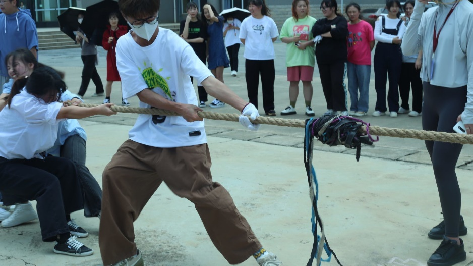 为了促进班级的凝聚力与向心力的发展,增强班级同学的信任感与责任感。 进一步丰富同学们的校园生活,增强大学生的身体素质。昆明文理学院外国语学院在2022年6月18号下午13:00举行了六月特色体育活动----拔河。 各个班级在比赛前积极准备,热身比赛。在正式开始前,外国语学院体育部的各位同学积极检查比赛时所需的道具与相关器械。裁判与比赛班级同学准备就绪,随着一声哨下拔河比赛拉开序幕。
