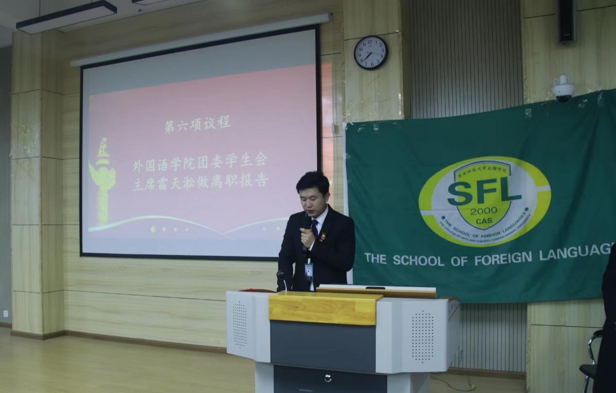 第五阶段:外国语学院团委学生会执行主席雷天淞进行离职工作报告。