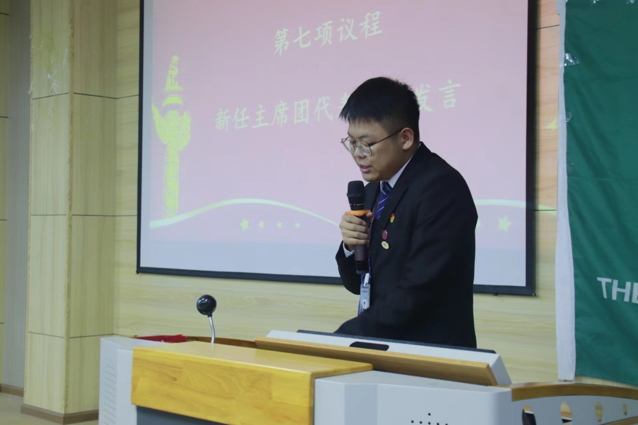 第六阶段:外国语学院团委学生会新一届执行主席山磊代表新一届主席团进行了就职发言。