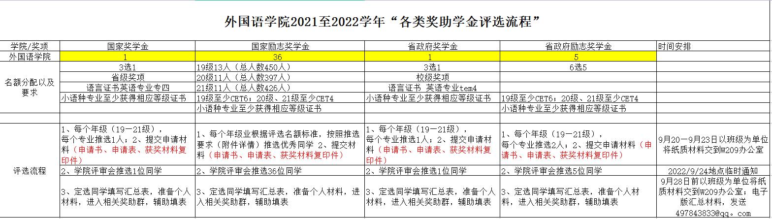 外国语学院2021至2022学年“各类奖助学金评选流程”