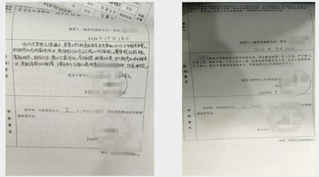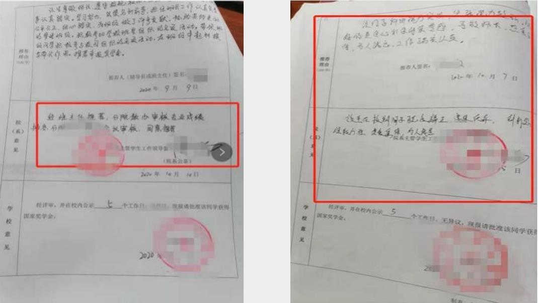 要求:院系需对评审程序、辅导员或班主任推荐的学生是否符合评审要求的各项条件进行审核。院系意见 ,不可过于简单。