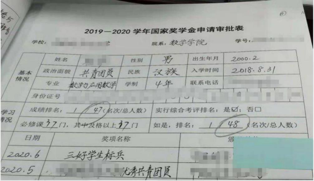 关于《国家奖学金申请审批表》填写的常见问题