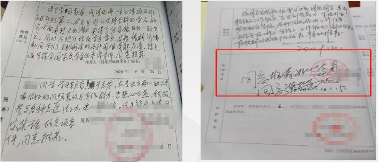 “推荐理由”“院系意见”完全一致
