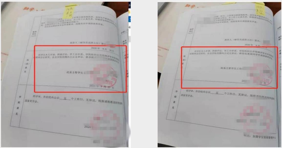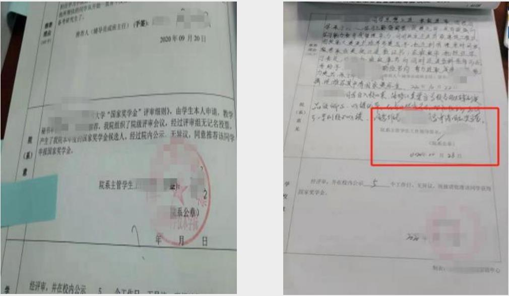 “院系意见”未落款时间;“院系意见”未盖公章