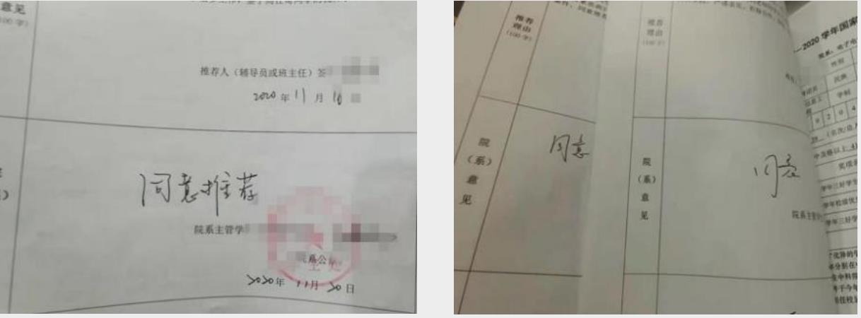 “院系意见”只签写同意 、同意推荐 ,过于简单。