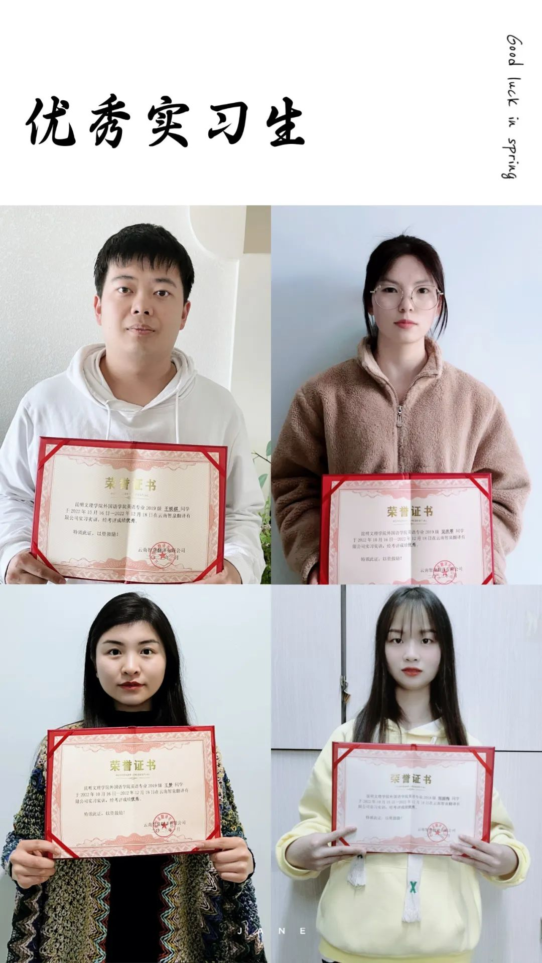 昆明文理学院外国语学院2019级48位同学翻译实习实训圆满结束啦!