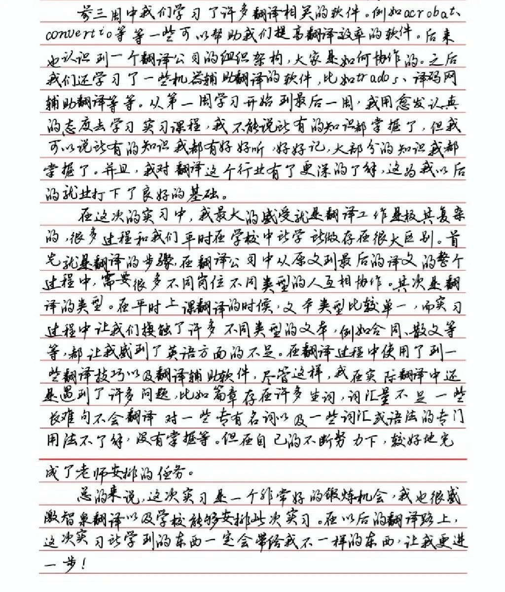 经过本期实习,学生可以了解并获得:☑ 新时代语言服务行业概况、翻译公司业务流程、人员配置、翻译规范等。☑ 翻译技术相关知识,如搜索工具,CAT实践工具Trados,Transmate等。☑ 还有双证:智泉翻译公司实习证书+中国翻译协会语言服务行业创业创新(LSCAT)中心见习证书!☑ 学生接触的翻译技术和自身所学专业息息相关。本次实习实训不仅是对学生在校学习知识的补充,也是帮助学生充分地了解自身优势从而更好就业,大大提高了学生的综合素质。