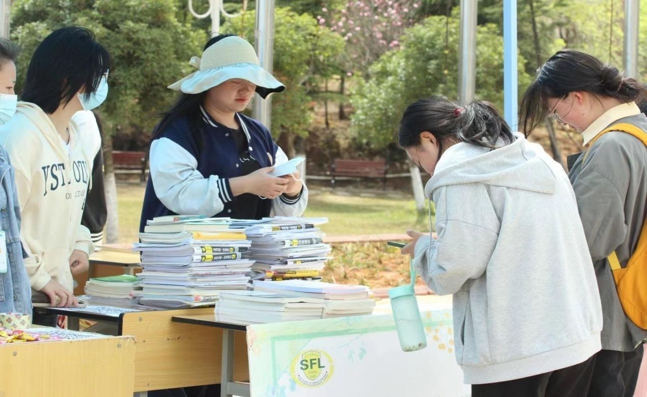 星光不问赶路人,荣光属于奋斗者。此次;雷锋书箱公益活动鼓励大家将自已手中闲置的学习资料,如:大学英语四级、六级考试、教师资格证考试等资料进行捐赠;对于有相关需求的可以现场从其他同学捐赠的书籍中自取。外国语学院团委学生会成员有序并成功组织了本次书籍捐赠公益活动。
