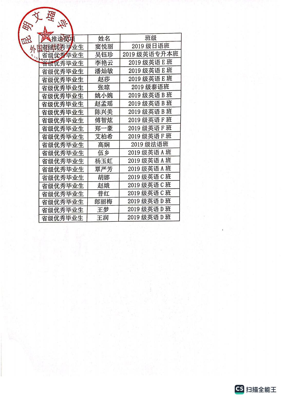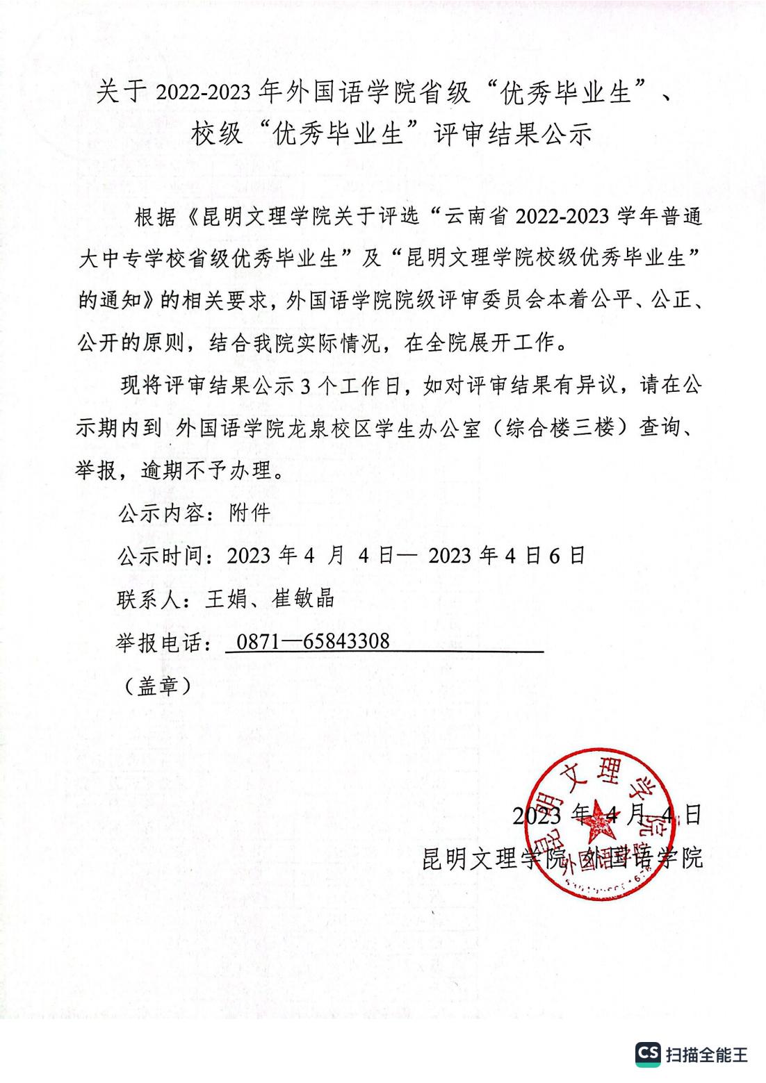 关于2022-2023年外国语学院省级“优秀毕业生”、校级“优秀毕业生”评审结果公示