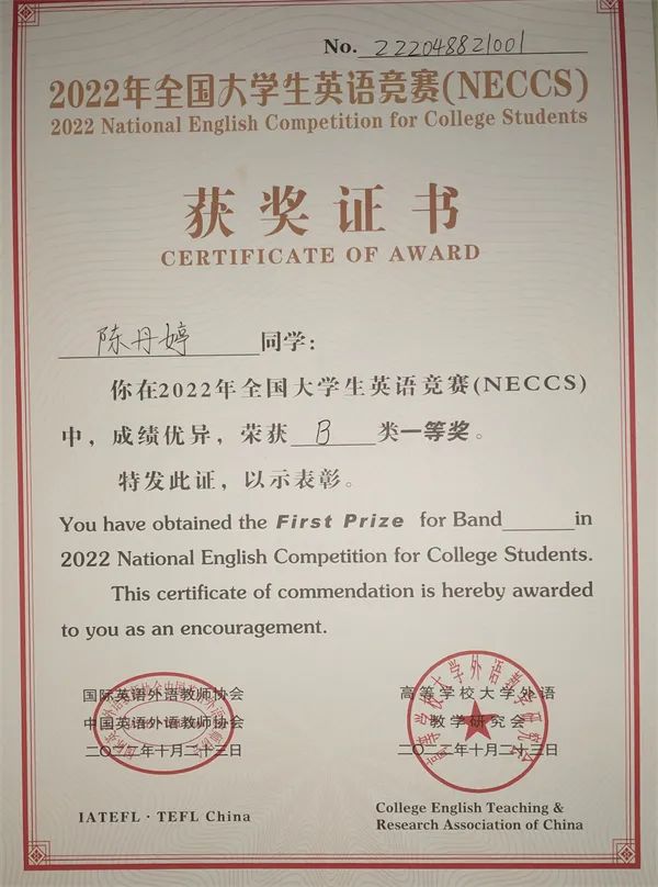 去年10月23日,对于昆明文理学院外国语学院英语专业学生陈丹婷而言意义非凡,全国大学生英语竞赛B类一等奖的好成绩让她欣喜若狂。