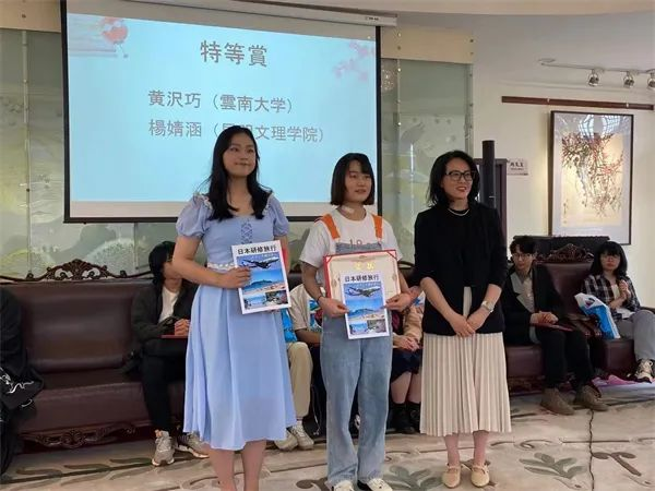 今年4月22日,第十三届彩云基金日语演讲比赛成绩揭晓,昆明文理学院外国语学院日语专业学生杨婧涵一举斩获特等奖。;我甚至都不敢自己查询成绩。;当朋友告知名次时,杨婧涵惊喜万分,却又深感是情理之中。与她一起登上领奖台的还有同班同学,获得一等奖的范博文。