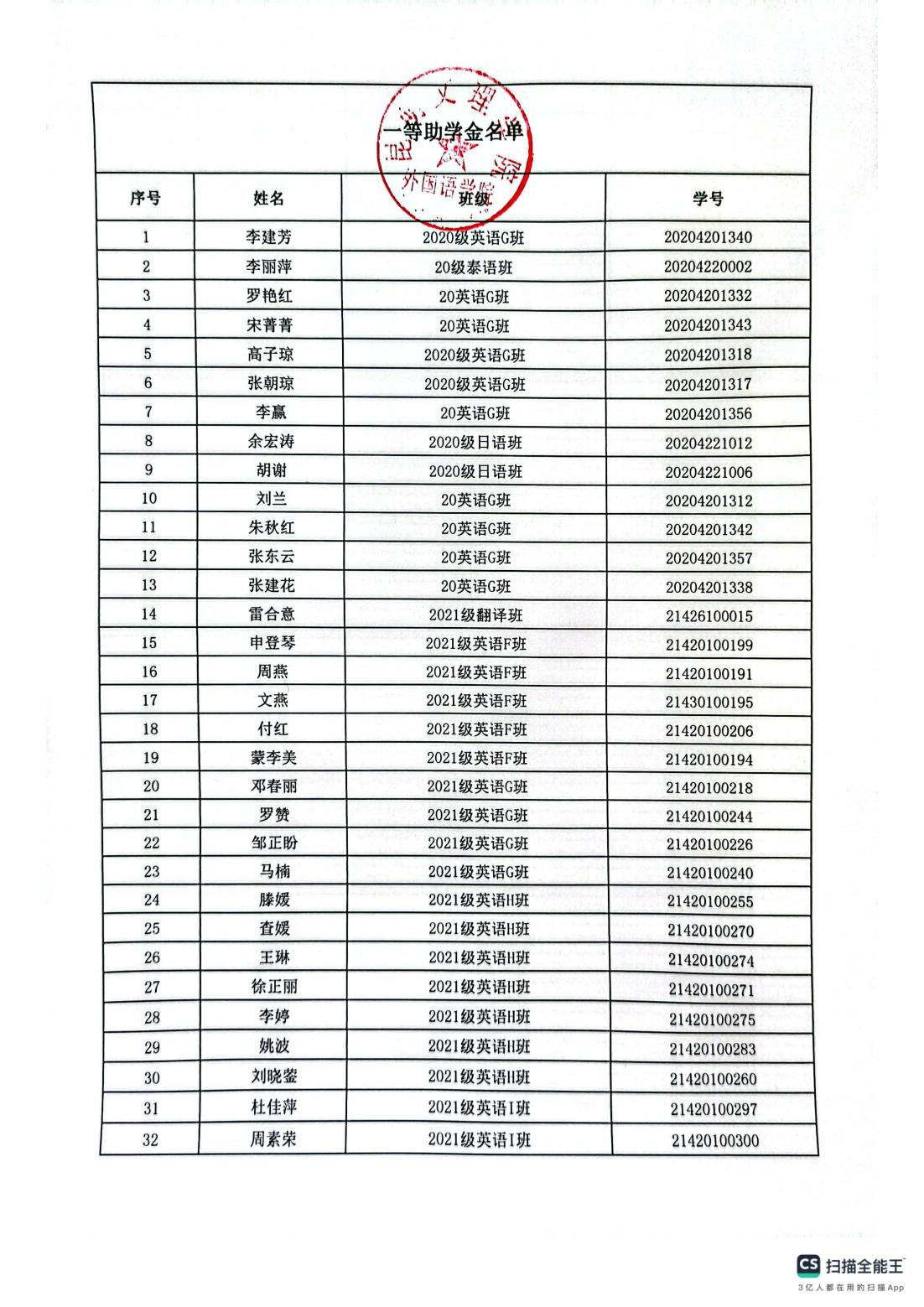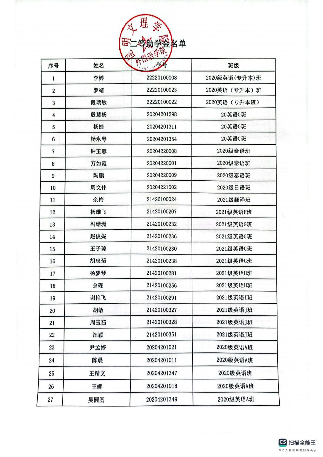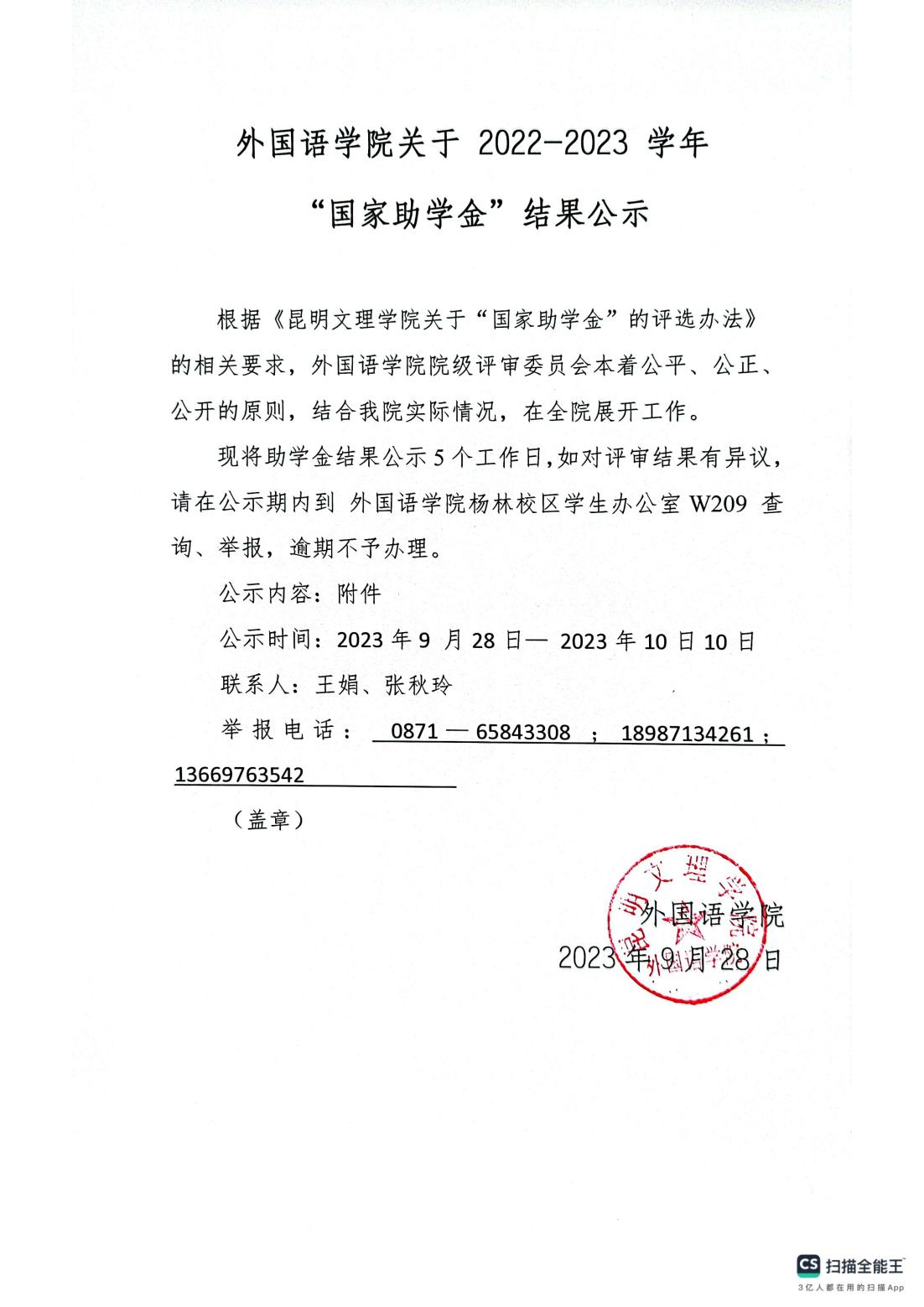 外国语学院关于 2022-2023学年 “国家助学金”结果公示