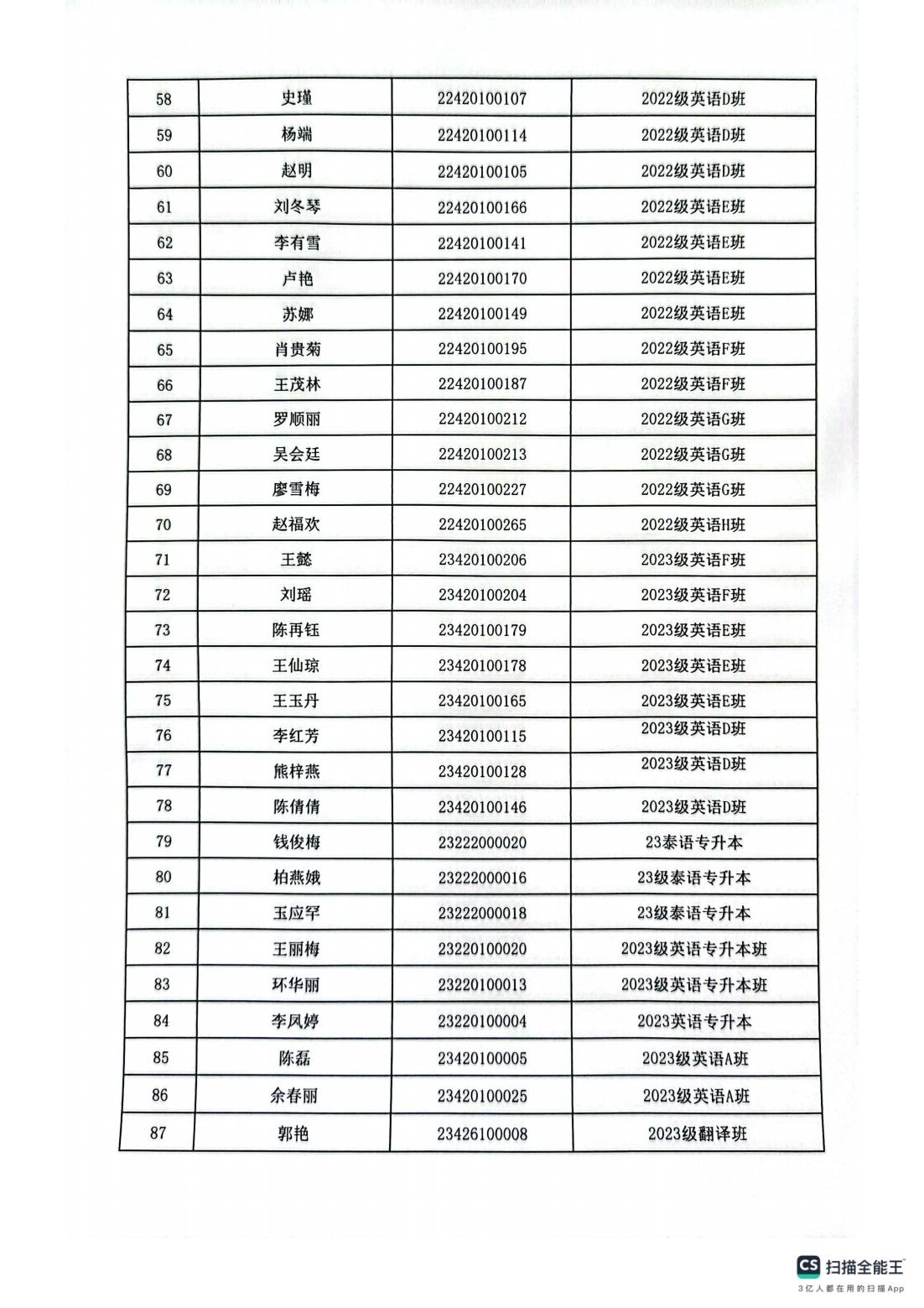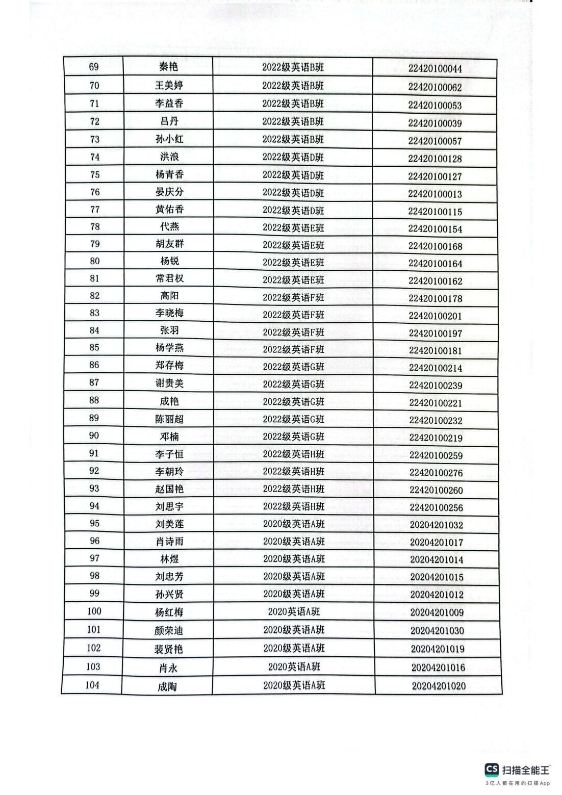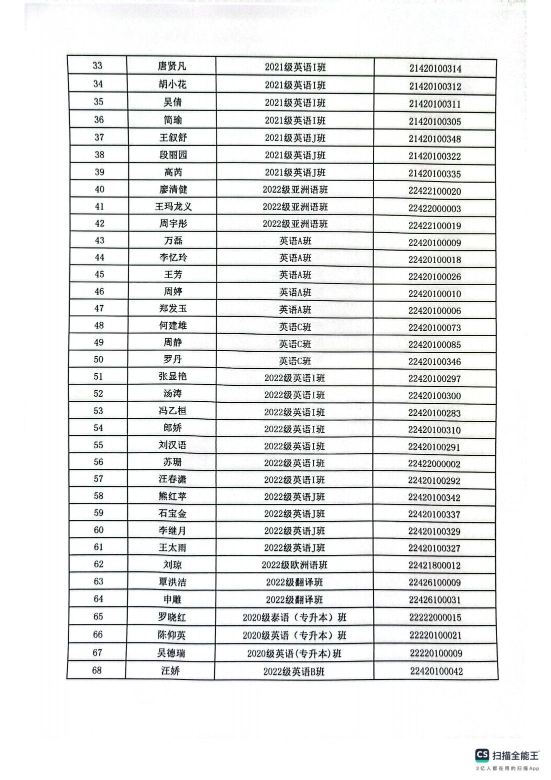 外国语学院关于 2022-2023学年 “国家助学金”结果公示
