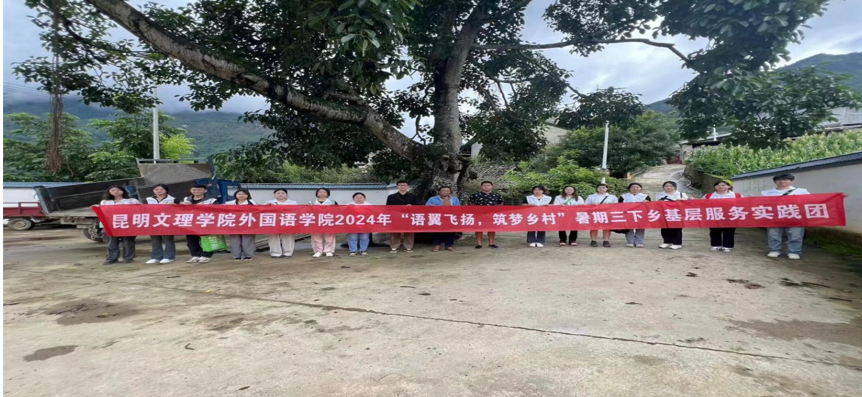 为深入贯彻习近平新时代中国特色社会主义思想和党的二十大精神,积极响应国家关于;加大国家通用语言文字推广力度;的决策部署,强化农村地区的语言文化建设,引导青年学生深入社会,锤炼品格,增长才干,2024年7月10日至7月16日,昆明文理学院外国语学院基层服务实践一行32人前往永德县勐板乡开展2024年;语翼飞扬,助梦乡村;暑期社会实践志愿服务活动。