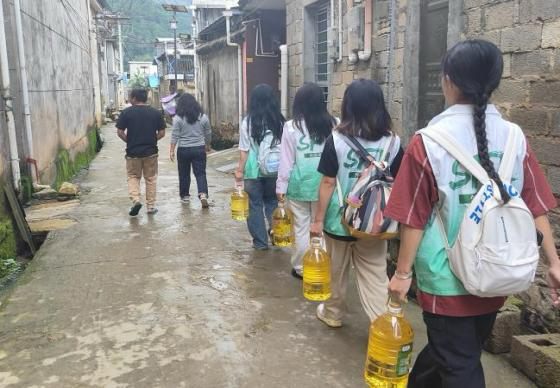 7月13日,实践团深入勐板村与白岩村,走访了20户村民家庭,耐心倾听了村民们的心声,细致了解了他们的需求与当前面临的困境,收集了许多关于勐板乡鲜活而生动的故事。此次走访,实践团特别关注到独居老人与贫困家庭的实际困难,为此精心准备了包括大米在内的一批生活必需品,亲手送到他们手中,以实际行动传递了民族团结达疆兴,籽籽同心一家亲的深情厚谊。大家深刻体会到,全国各族人民唯有像石榴籽般紧密相连、相互扶持,才能共筑民族复兴的伟大梦想。