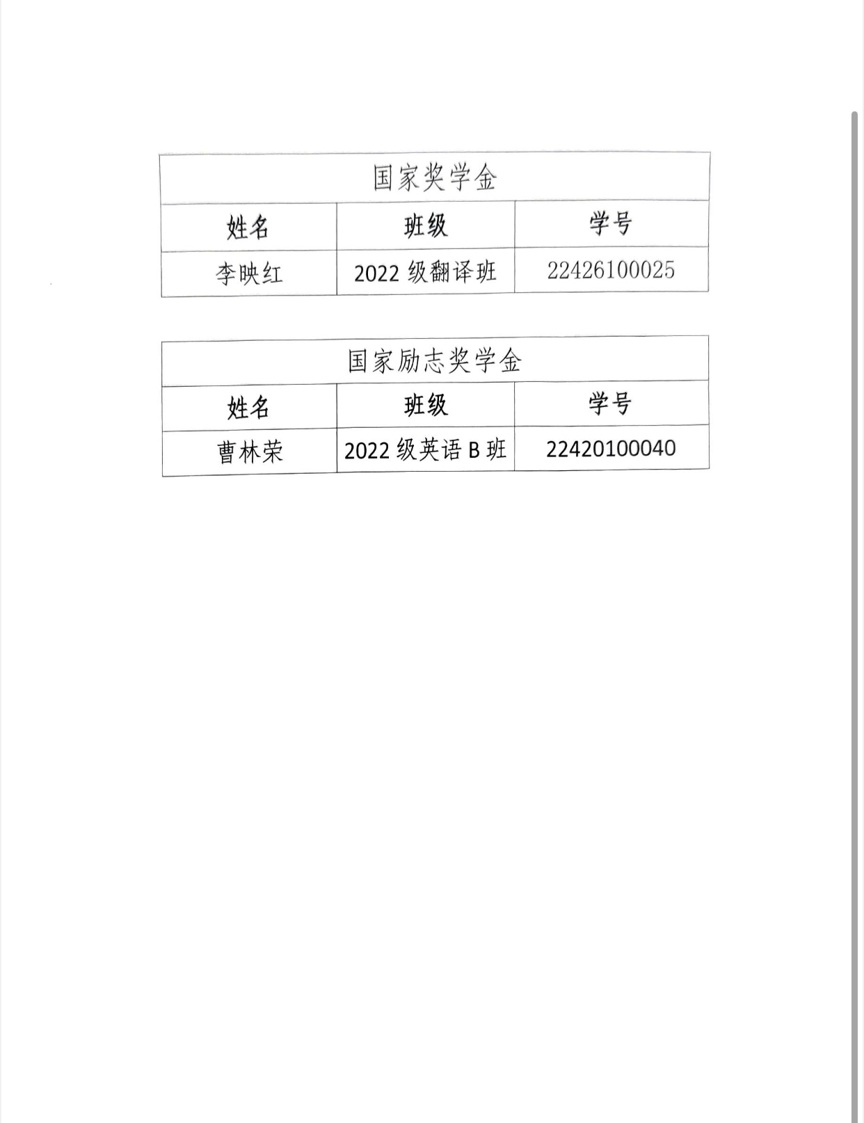 上一篇:关于 2023-2024 学年外国语学院本科生国家奖学金追加名额评选...