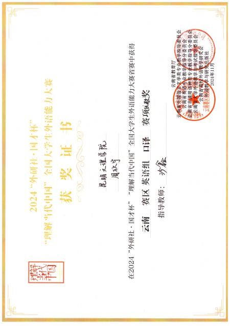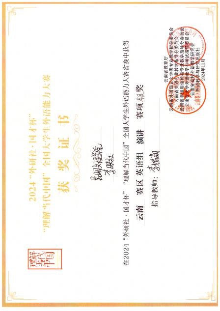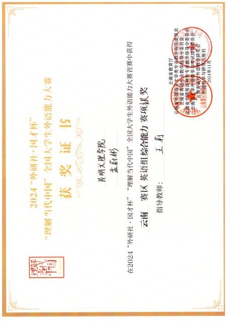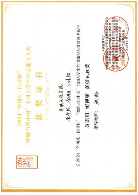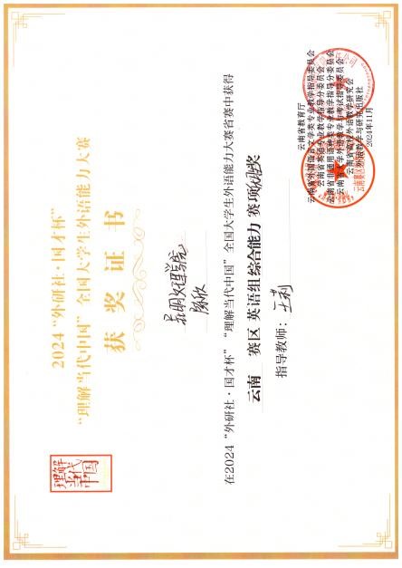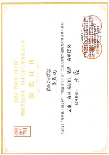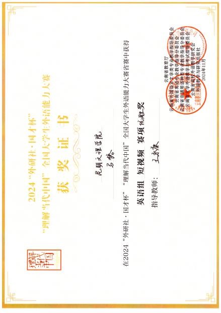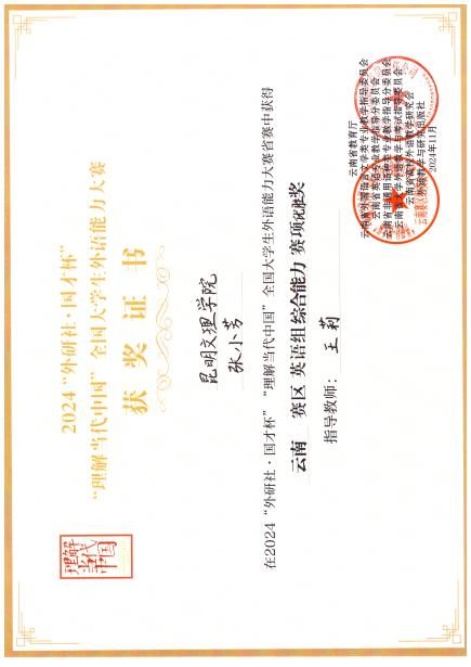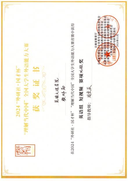 昆明文理学院外国语学院英语系学生在2024“外研社·国才杯”“理解当代中国”全国大学生外语能力大赛中获佳绩