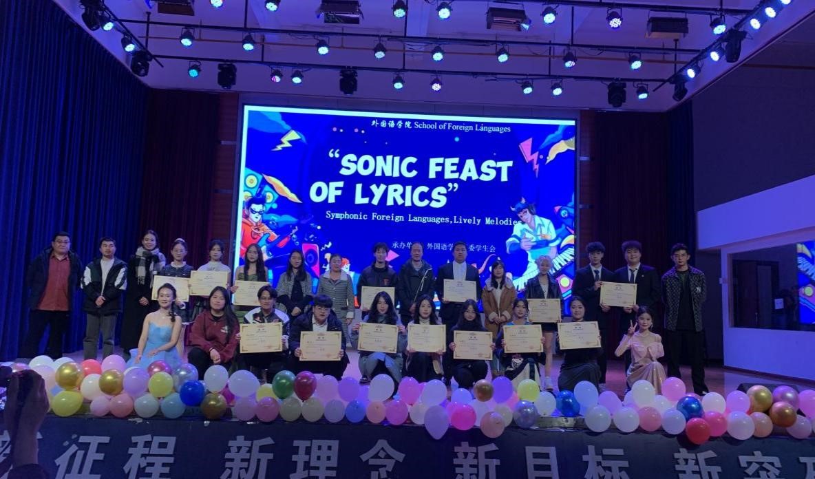 昆明文理学院外国语学院举办的SONIC FEAST OF LYRICS 校园歌手大赛总决赛已于12月12日在学生会堂圆满落幕。在这场视听盛宴中,来自各二级学院的歌手们用歌词编织故事,用旋律触动心灵,为观众带来了一场难忘的文化体验,同时搭建起语言与文化交流的桥梁。