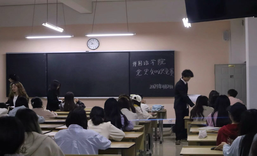 2025 年 4 月 24 日,昆明文理学院外国语学院成功举办党史知识竞赛活动,为全院同学搭建了 学思践悟 的线下竞技平台。本次竞赛聚焦党的百年奋斗历程、重大理论成果与精神传承,以知识与趣味交融的形式,实现理论学习与实践探索深度结合,为党史学习教育注入新活力。