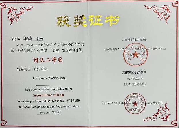 在刚刚结束的第十六届;外教社杯全国高校外语教学大赛(大学英语组)云南赛区中,我校外国语学院大学外语教学部教师团队凭借扎实的专业素养和创新的教学理念在赛场上大放异彩,喜获视听说组一等奖和综合课组二等奖。