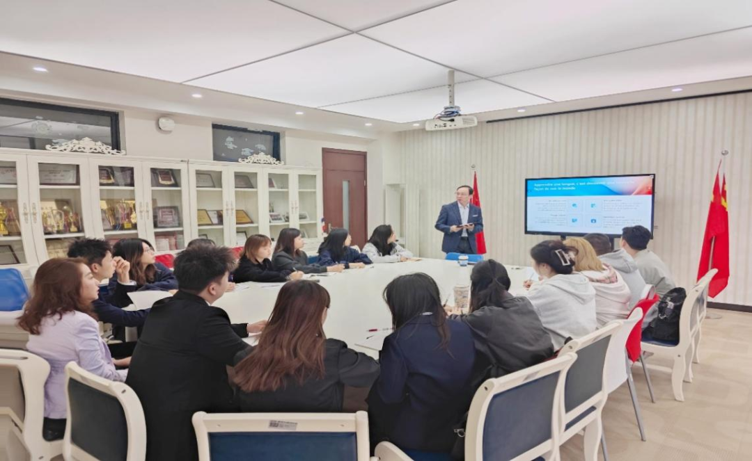 10月21日上午,在陈列了上外法语系诸多荣誉的报告厅,王海洲教授为来访师生带来讲座:Voyage au-delà des mots:développer sa compétence interculturelle(《文字外的旅程:提升跨文化能力》)。10月23日上午,朱燕副教授开展题为《风起东方-从宫廷到民间的中法交流》的讲座。